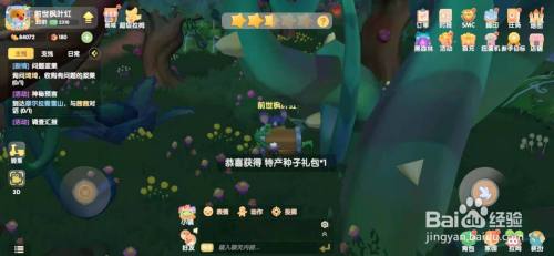 经由过程空间裂痕,进入黑丛林,来到绝壁边,找到大树,在大树旁边找到深蓝色植物,即可发现宝箱。打开可以获得特产种子礼包。