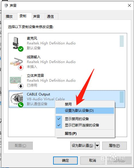 点击设置为默认通信设备和默认设备。