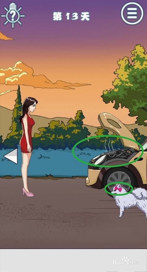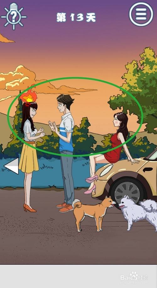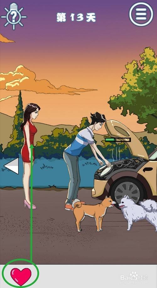 车子修好后,女车本家儿标的目的男友表达爱意,被女友看见,游戏就过关了。