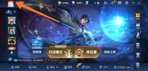1、登录王者荣耀,点击左上角的头像。