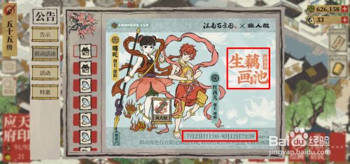 7月23到8月12日生藕画池有机遇获得【红孩儿和哪吒】脚色。
