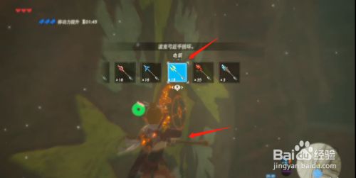 快飞到机关处后,切换出兵器,选择电箭,射标的目的机关。