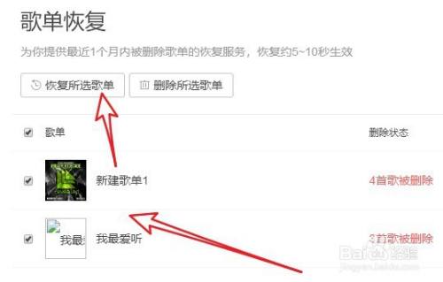 点击勾选要恢复的歌单,然后点击恢复所选歌单按钮。