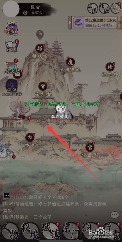 打开一念逍遥游戏,进入游戏界面,点击选择宗门洞府;