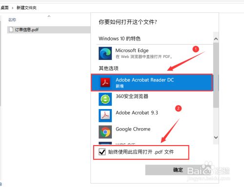 第三步:选择想要默认打开的软件Adobe Reader,而且勾选“始终利用此应用打开”