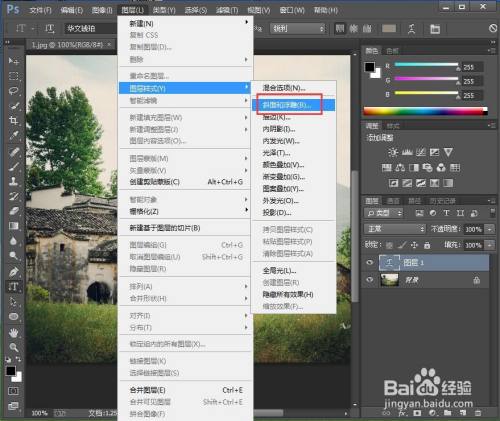 点击图层,选择图层样式下的斜面和浮雕;