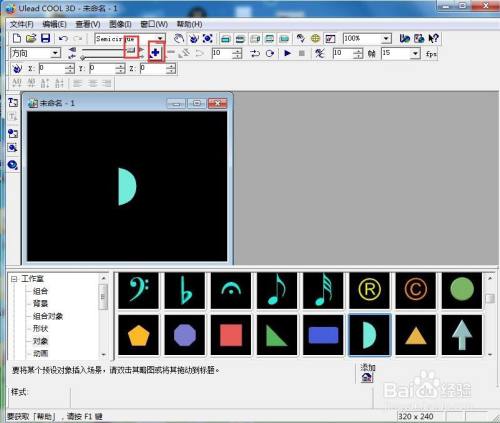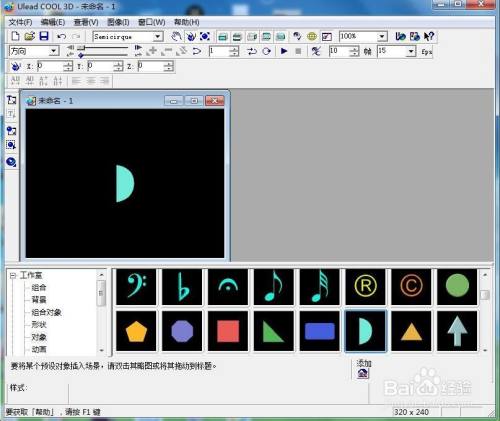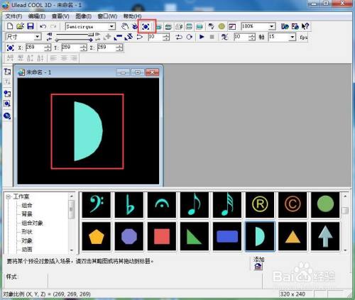 点击大小,标的目的外拖动鼠标,将半圆放大;