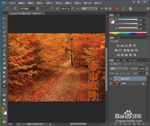 点击文字东西,输入喷鼻山红叶;