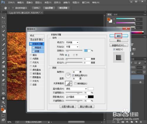 点击图层样式下的斜面与浮雕;