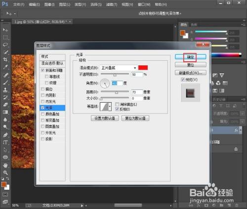 点击图层,选择图层样式,选择光泽;