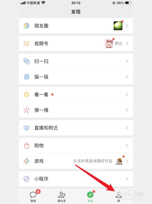打开微信,登录小我微旌旗灯号,点击我选项。