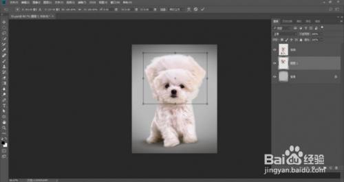 选择椭圆选框东西,在狗狗头部建立一个选区,按下快捷键Ctrl+J,将选区内的图像获得一个新的图层中: