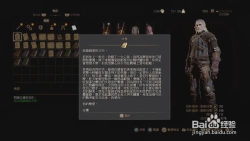 最后回到男爵身边(此时凳子上还有个情书 有乐趣可以看看) 触发剧情 男爵终于把所有关于尤里的线索告诉了杰洛特 这一使命也就完当作了