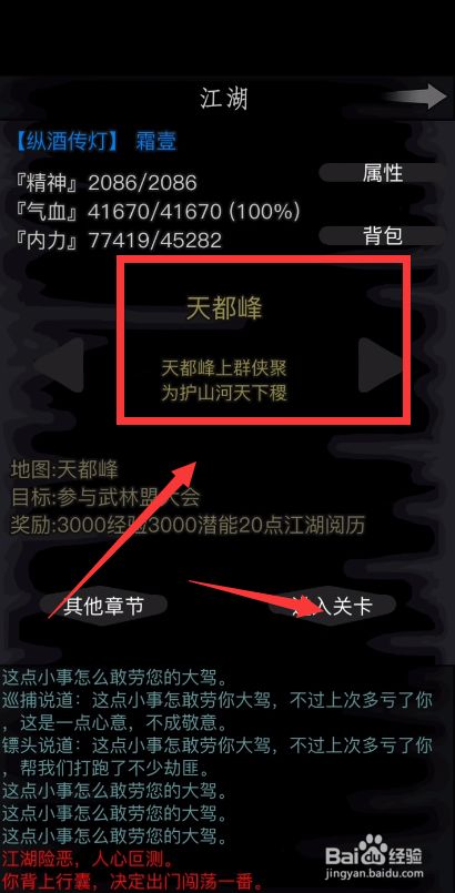 输出装备,击败武林盟门生,即可完当作放置江湖天都峰使命。