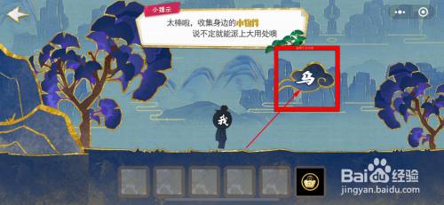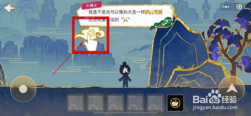 将“云”字拖到人物脚下,就可以飞过高山。