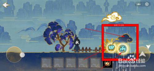利用“雷”字劈开巨石,就可以进入下一关了。