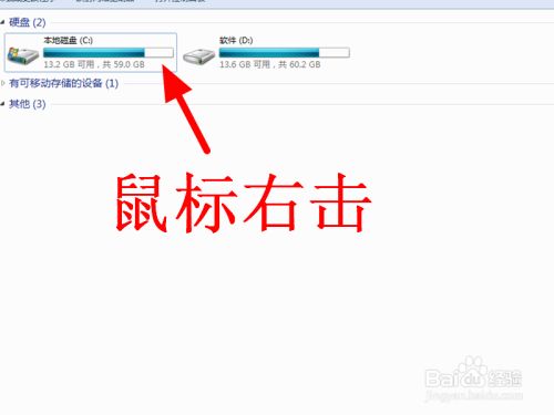 打开电脑,选中c盘,鼠标右击,直接点击【属性】。