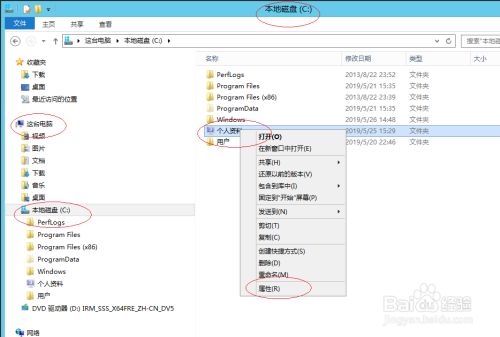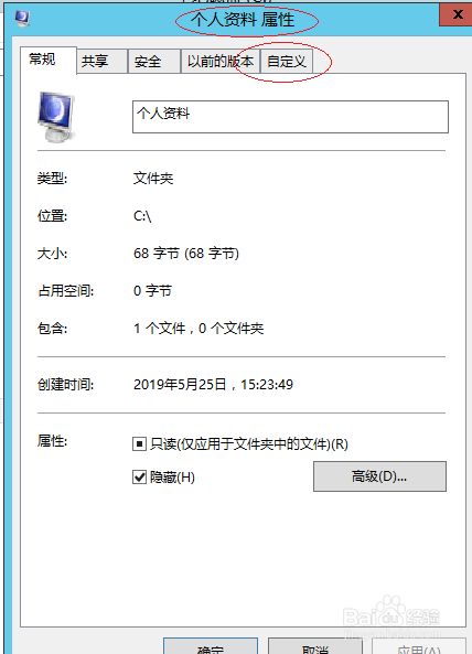 鼠标右击用户文件夹图标,选择快捷菜单"属性"项