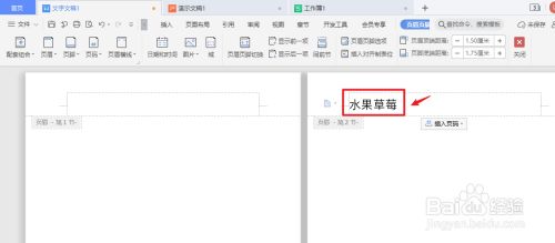 在第二页输入页眉文字。