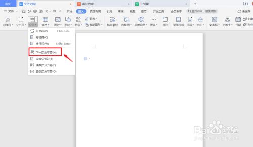 弹出白色框,点击【下一页分页符】。