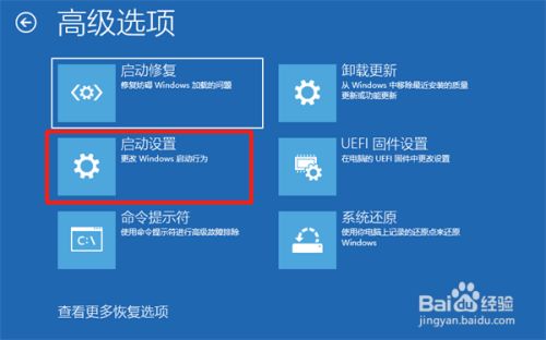 如图所示,在高级选项界面中,选择启动设置。