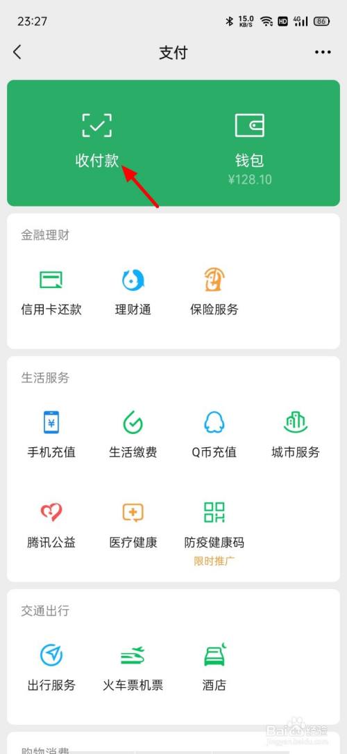 在支付页面,点击收付条目。
