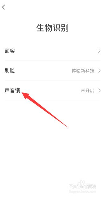 进入生物识别页面,选择“声音锁”。鄙人一个页面,点击“当即开启”。