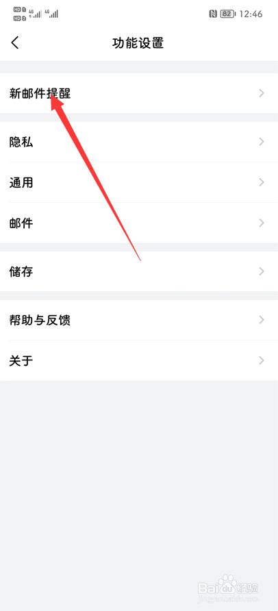今天功能设置界面后,点击“新邮件提醒”。