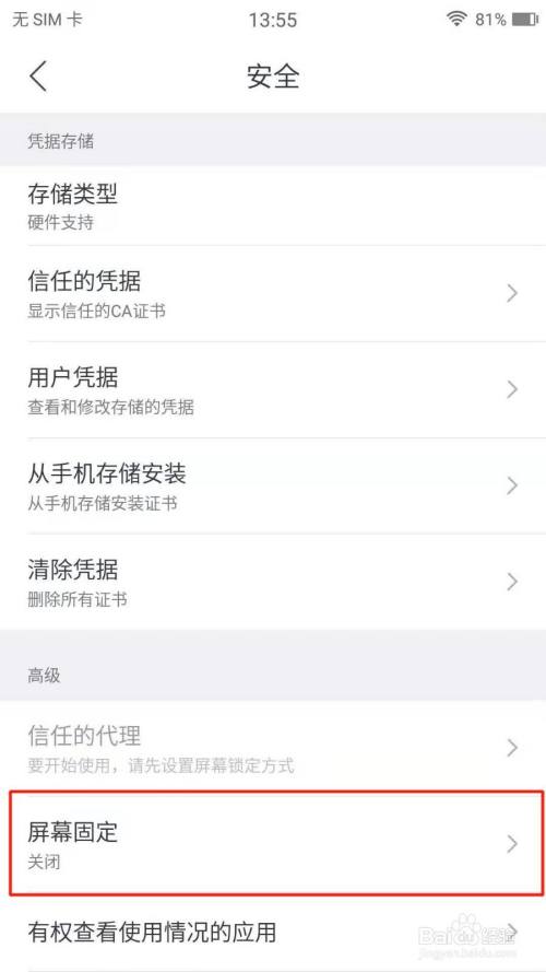 END在“平安”列表项中,选择“屏幕固定”列表项。