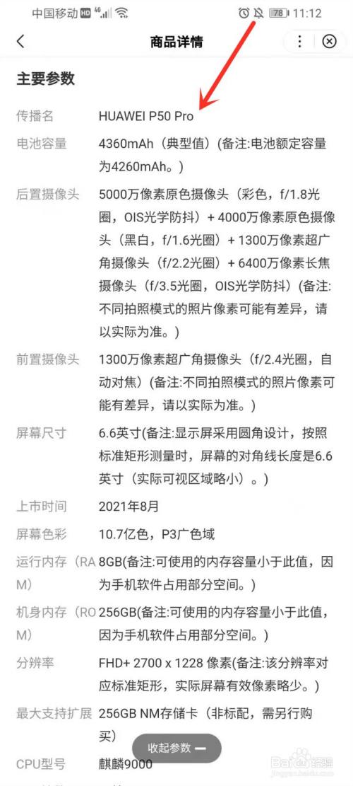 即可查看华为p50pro参数设置装备摆设。