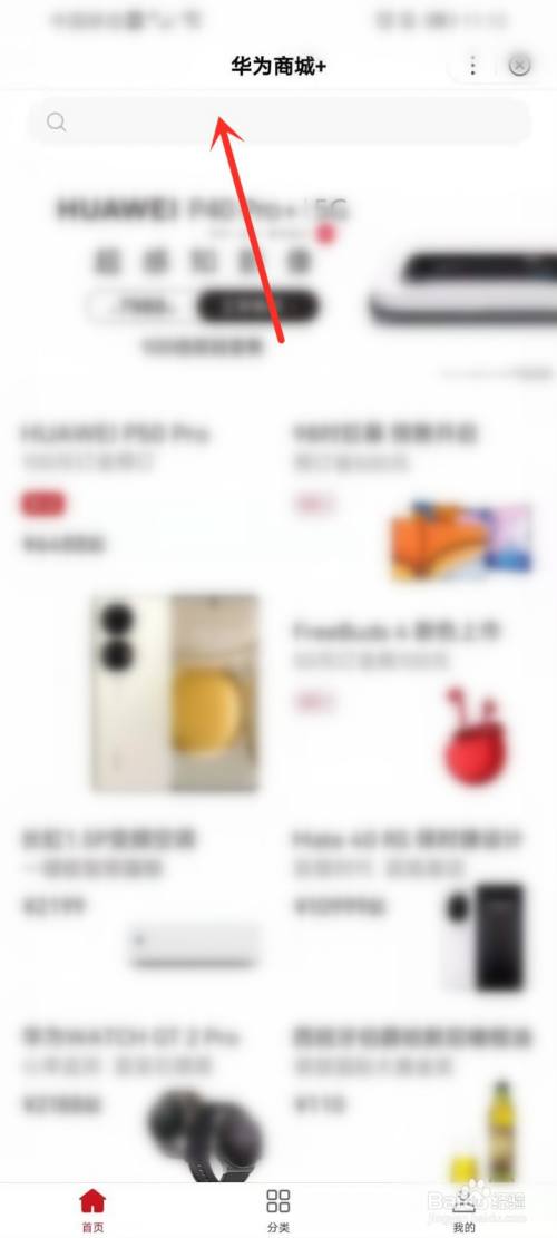 打开百度app,在搜索框输入【华为商城】,打开华为商城小程序。