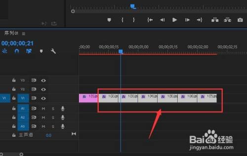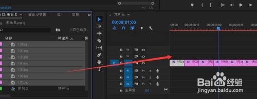 打开PR软件导入需要多个视频片段或图片,这里小编以图片做示范。