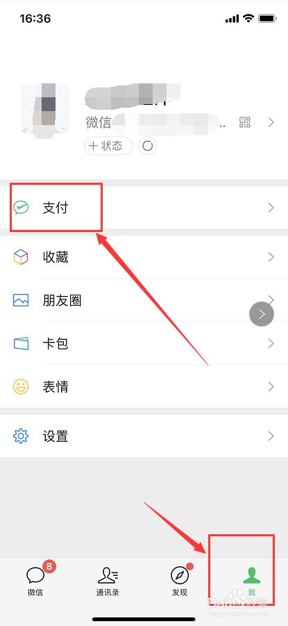 打开微信,选择“我”再选择“支付”,如图所示。