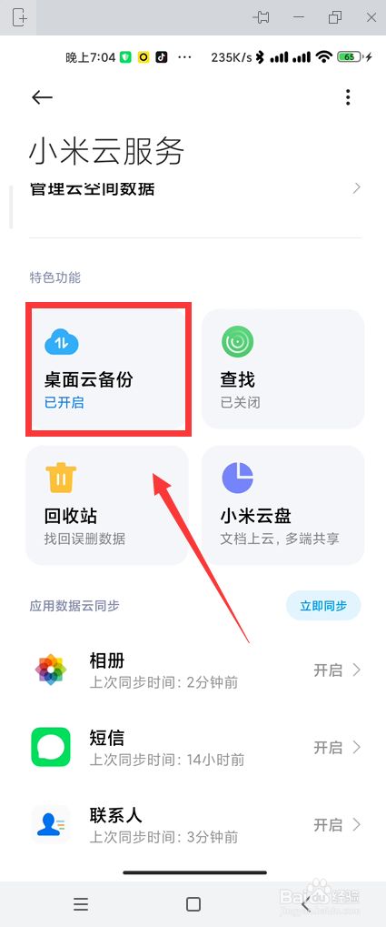 点击桌面云备份。