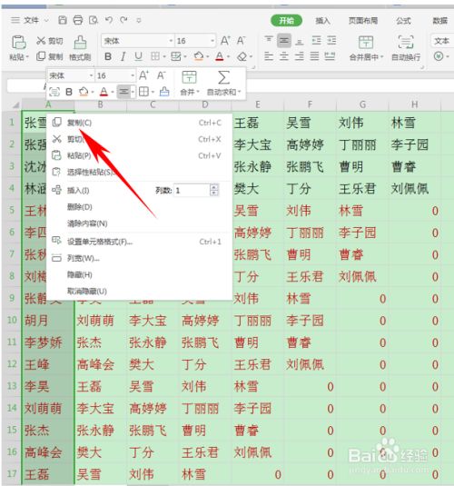 然后选中整个A列,单击鼠标右键选择复制,或者直接按快捷键Ctrl+C。