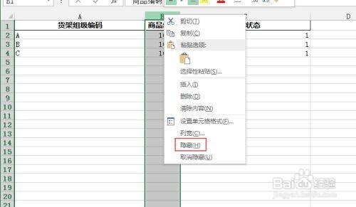第六步:最后找个空白处所粘贴复制的数据,查验其结果,中心埋没列没有粘贴过来,如图所示