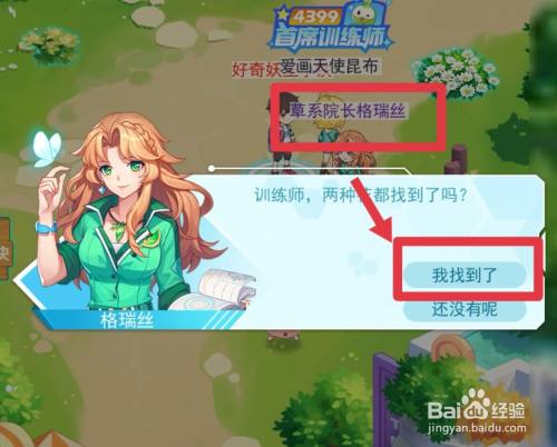 带上物品,找到“草系院长格瑞丝”,挑战他。