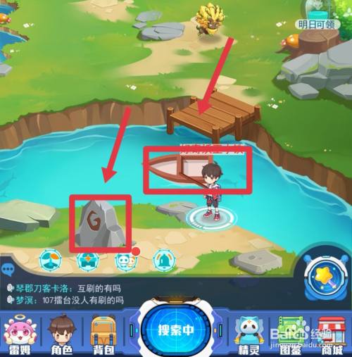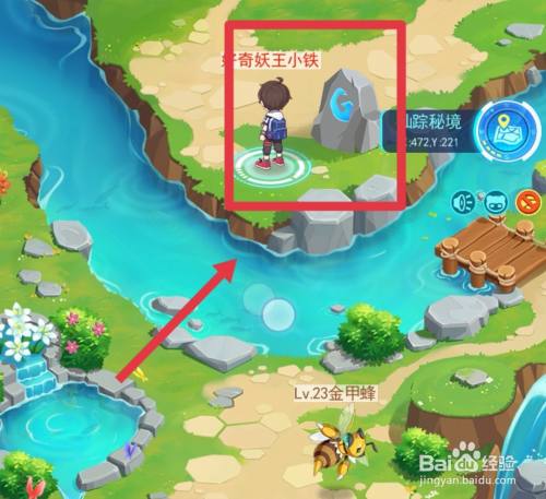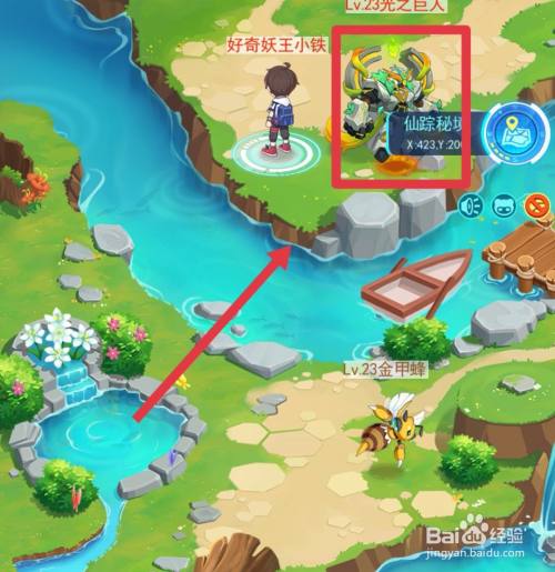 获得生命之花后,继续坐上划子,跟着河道来到追踪秘境,并点击上到右上的岸边。