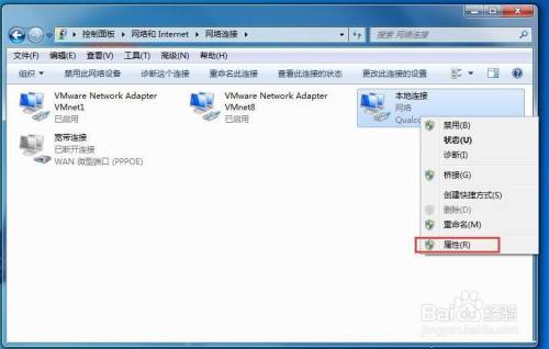 4、右键点击收集毗连,选择属性,然后在属性页面选择IPV4。