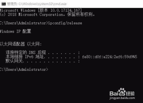 这样我们的电脑就释放了当前的IP地址。