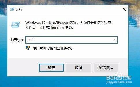 这时就会打开windows10的运行窗口,在窗口中我们输入号令cmd,然后点击确定按钮运行该号令。