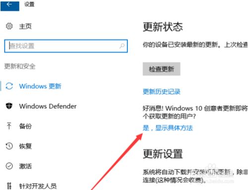4、进入windows更新后,单击“是,显示具体方式”。