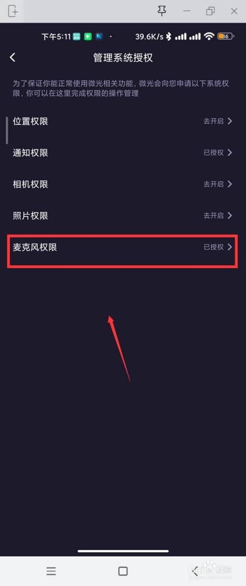 进入应用信息,进入权限办理中间,开启选择麦克风权限即可。