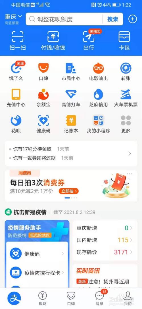 打开手机桌面支付宝APP,点击进入本家儿页。