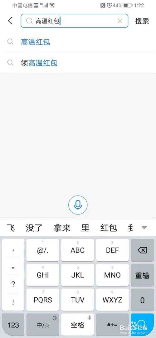 点击本家儿页上方搜刮栏,点击输入高温红包,点击搜刮。
