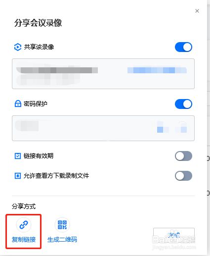 然后点击界面右下角的完成按钮退出,如下图,这样就可以把云录制的会议视频以链接的体例分享出去了。