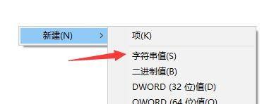 4、选中“System”项后,右击右边空白处,“新建”—“字串符值”。