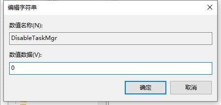 5、将新建的字符数串值定名为“DisableTaskMgr”,并右击“点窜”,设置其数值数据为“0”。