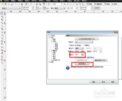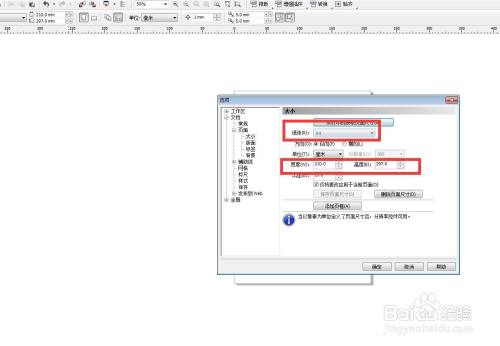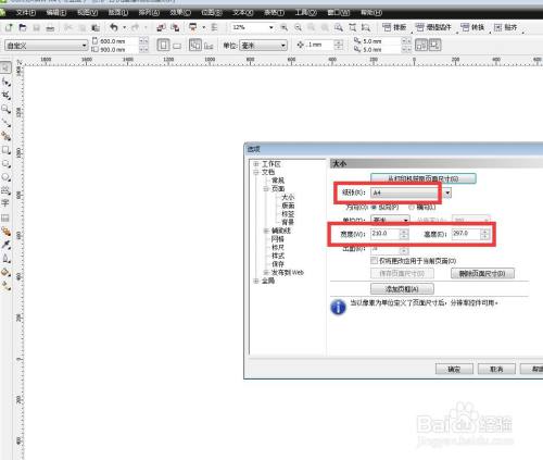 在这里可以设置纸张的大小,还可以设置文件的高度和宽度。