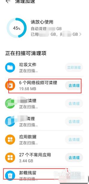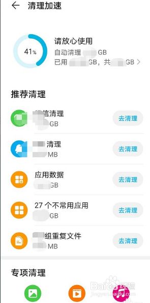 点击清理加快,清理垃圾文件、处置收集视频